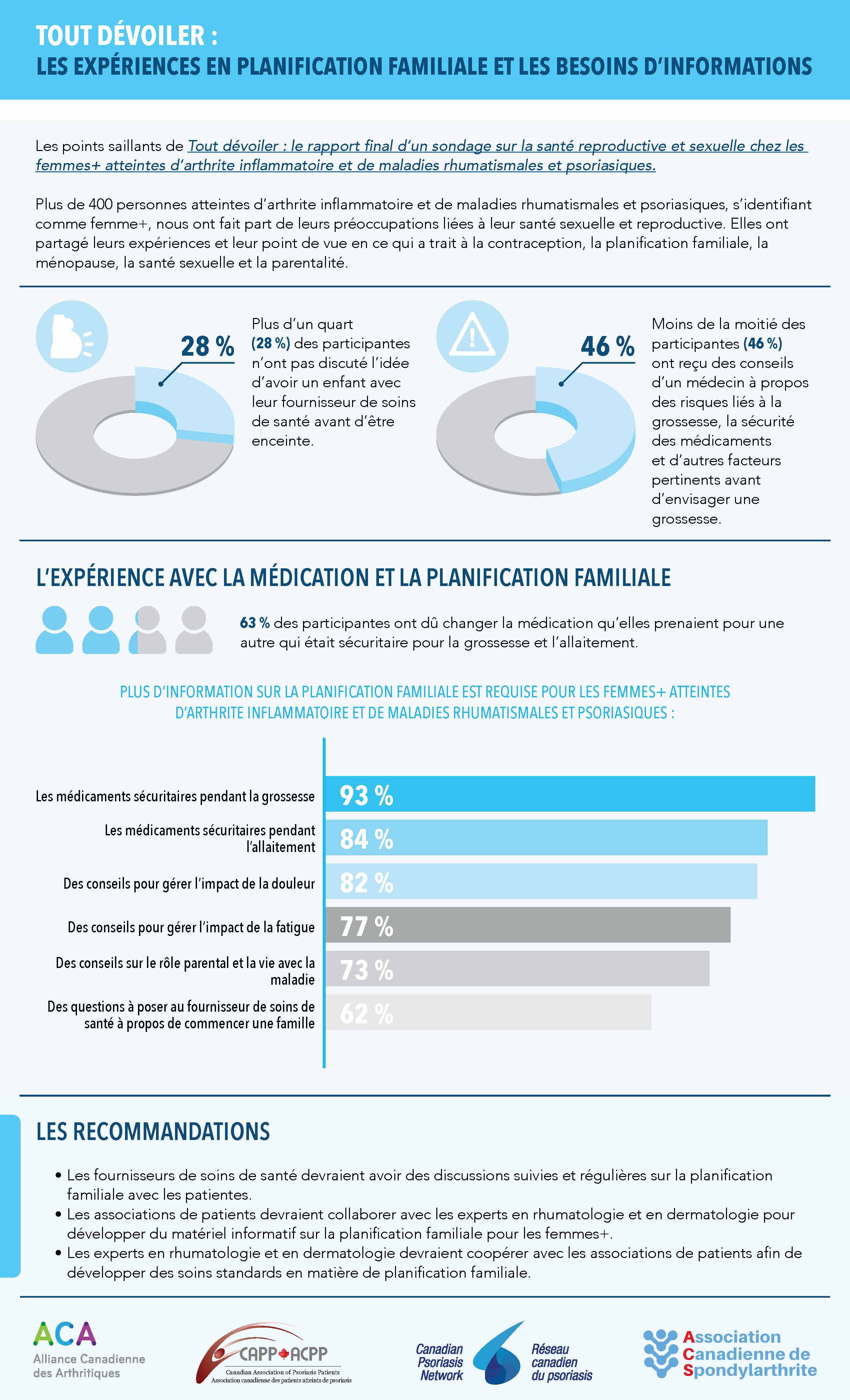 Baring it all (Tout dévoiler) : Rapport final d’une enquête sur la santé reproductive et sexuelle des femmes+ atteintes d’arthrite inflammatoire, de psoriasis et de maladies rhumatismales.